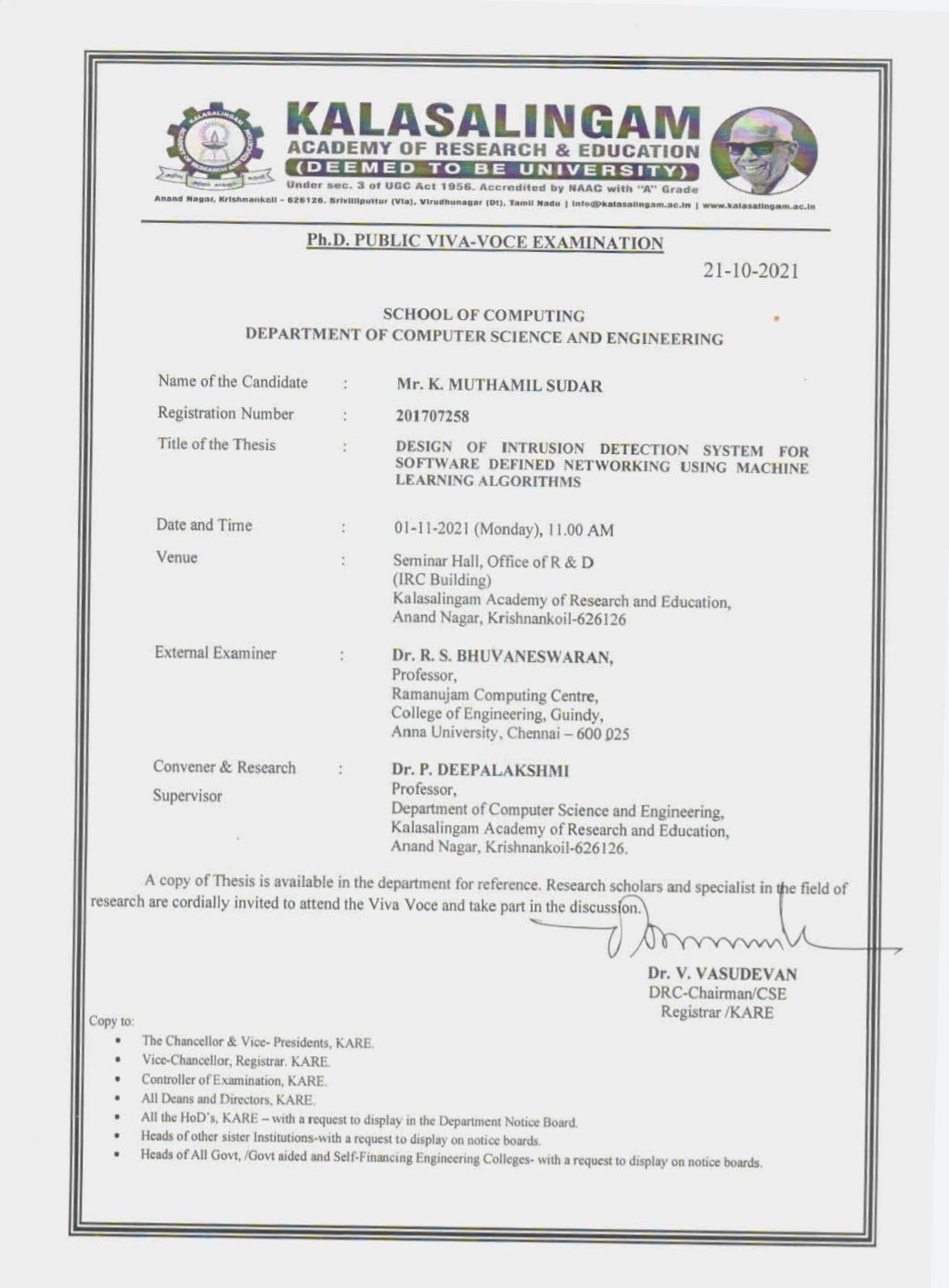 Late message but sharing to honor my fifth scholar Dr.Muthamil Sudar who completed his PhD viva voice in last November 2021.