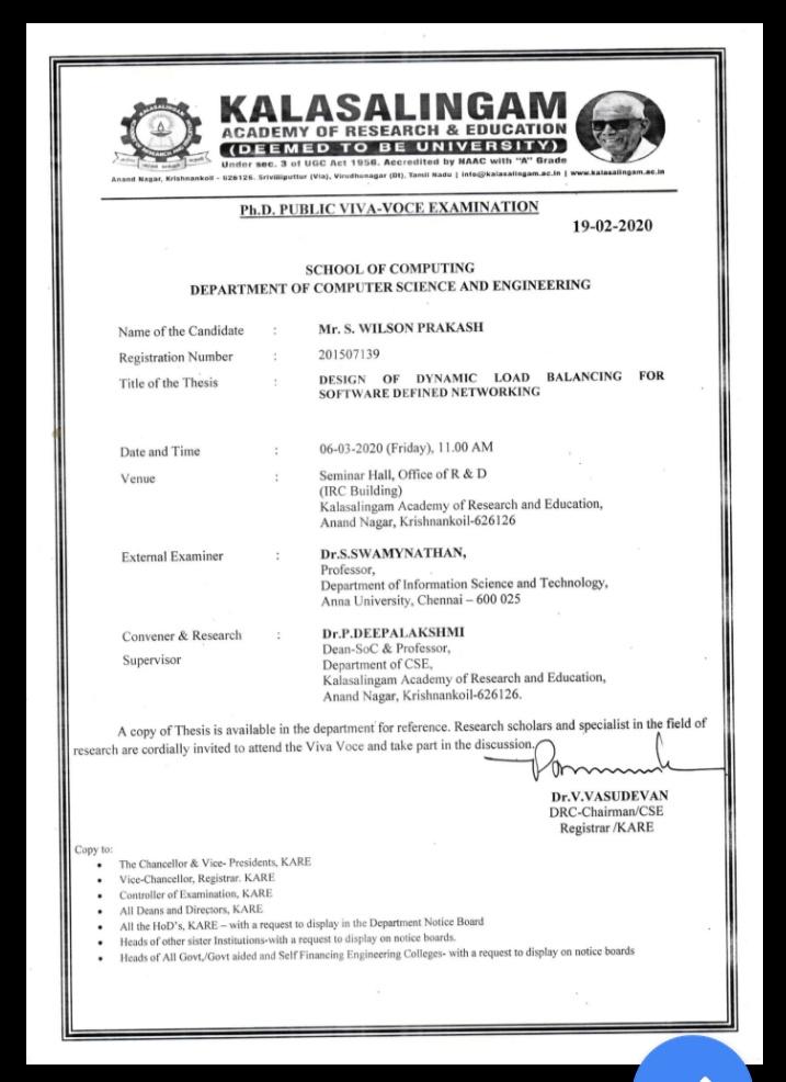 Successfully completed the viva of my fourth PhD scholar Dr.Wilson