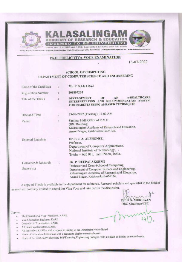 Mr.P.Nagaraj - PhD Viva voce exam Dr. P .Deepalakshmi 25 Jul 2022 · 1 min read Successfully completed the PhD Viva voce exam of my seventh scholar Mr.P.Nagaraj... Congrats Dr.P.Nagaraj